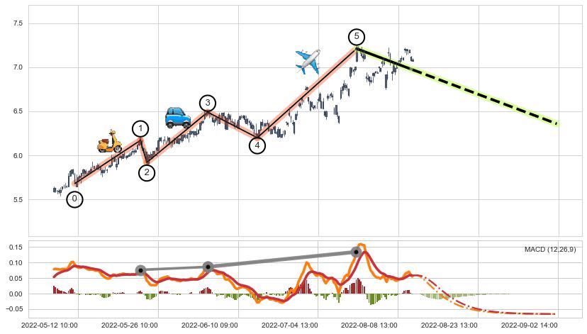 ➢ 【MACD】背离基于AI预测最终点位置,所以可注意观察前期预测走势是否相符合