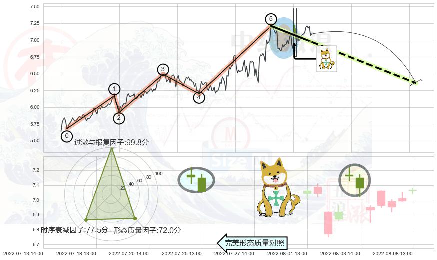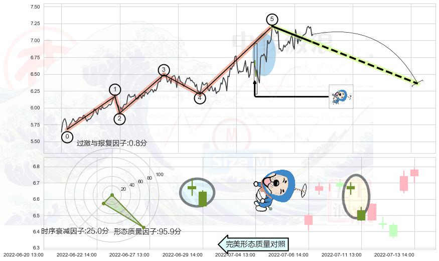 ➢ 🕰 价格走势在2022-07-08 14:00:00至2022-07-11 13:00:00期间形成下跌螺旋桨,残存影响值:-2.21