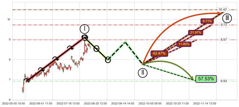 ♘ 支撑价格位7.41,可信任强度78.31%,距离最后交易2022-08-12 14:00形成的收盘价格8.57相差 -13.50%