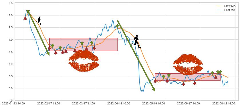 05-12 10:00至07-28 14:00 慢线与快线多次接触,存在上下穿越,有缠绕