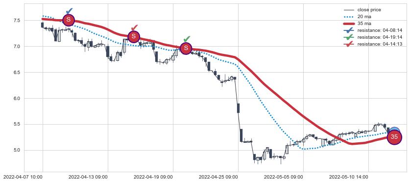➣ 35小时均线于(07-11 14:00: 5.59)形成【死叉】基于【死叉历史模型】预测死叉后最低波谷价格: 5.16, 死叉后最低价格5.10,已经下跌超出预测最低波谷价格, 预期反弹