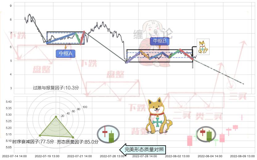 ➣ 下跌孤独十字星 + 缠论中枢点破位中枢B支撑下拉信号叠加后【信号初始稳固度】中等,【看空】信号叠加【可信度影响中等】
