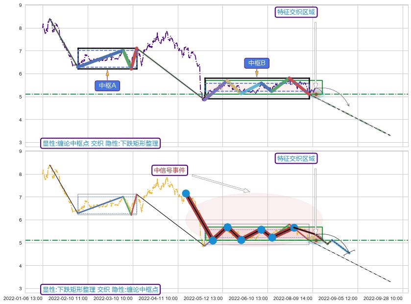 ➢ 下跌矩形整理属【中级别信号事件】缠论中枢点属【长级别信号事件】中长周期组合信号事件,中长事件长度比48.90%