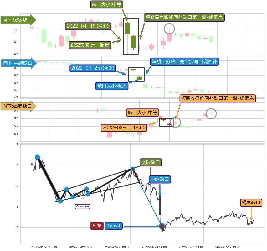 ➢ 2022-08-09 13:00形成:向下跳空【竭尽】缺口
