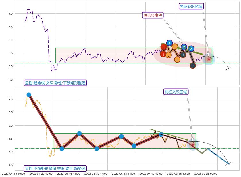 ➢ 趋势线属【短级别信号事件】下跌矩形整理属【长级别信号事件】长短周期组合信号事件, 短长事件长度比23.53%