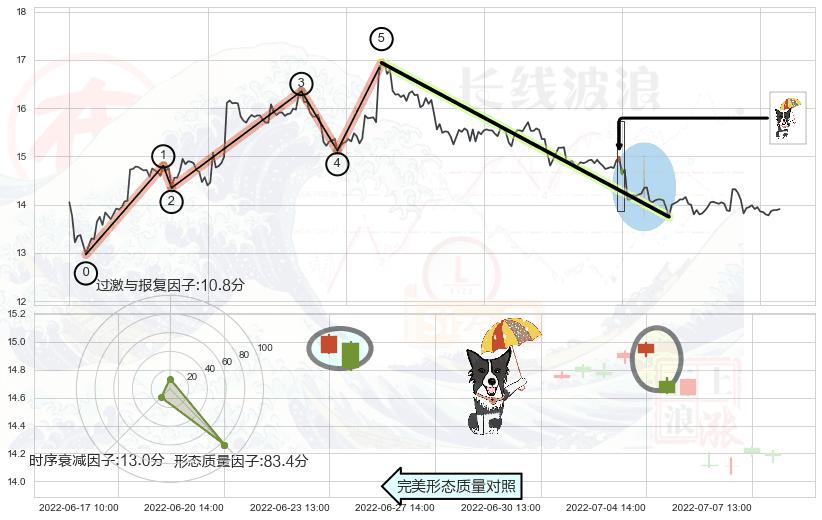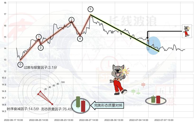 ➢ 🕰 价格走势在2022-07-06 13:00:00至2022-07-06 13:00:00期间形成看跌(高位倒锤头)流星线,残存影响值:-3.56
