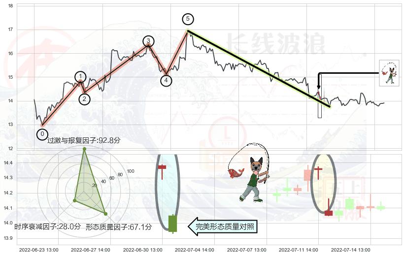 ➢ 🕰 价格走势在2022-07-12 14:00:00至2022-07-12 14:00:00期间形成单针探底(定海神针),残存影响值:4.57