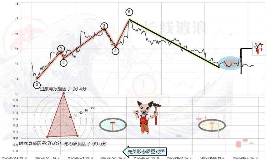 从2022-05-31 10:00至2022-08-12 14:00,共包含145个小时,阶段股价下跌-19.08%,阶段股价变动位移路程比: 1 : 4