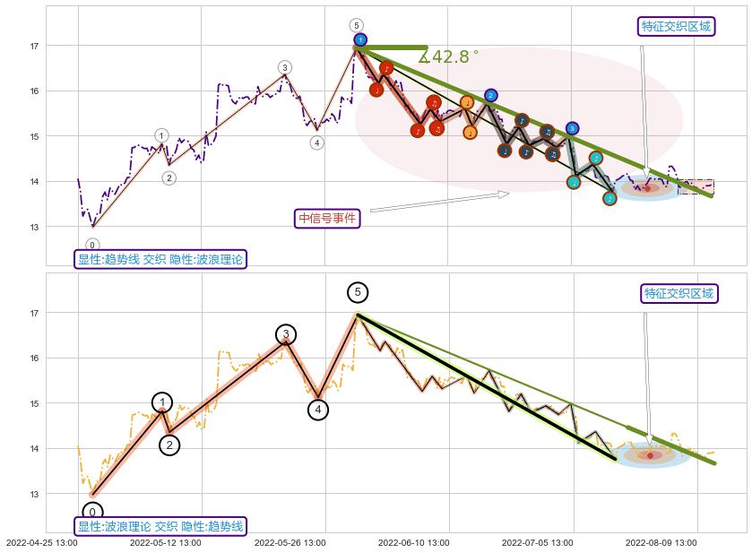 ➣ 上涨螺旋桨形态 + 波浪理论下跌浪:浪5反弹拐点信号叠加后【目标达成率】中等,【看多】信号叠加【存续影响中等】
