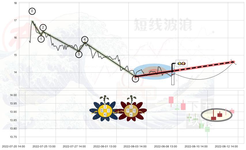 ➣ 08-04:13到达第❷价格目标位置13.82