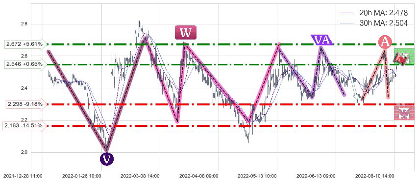 ♘ 阻力价格位2.546,可信任强度69.38%,距离最后交易2022-08-12 14:00形成的收盘价格2.530相差 +0.65%
