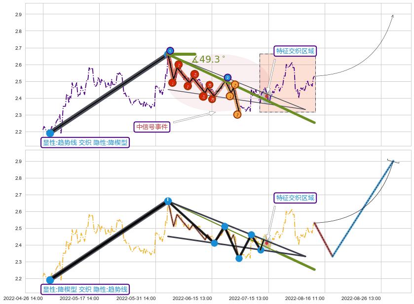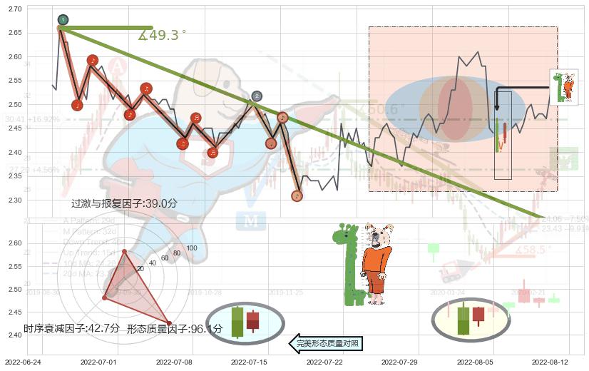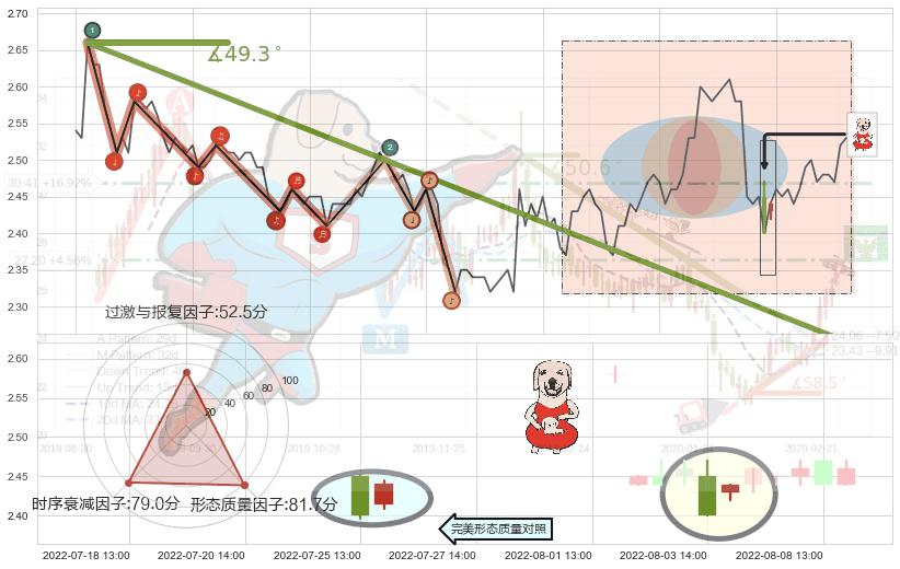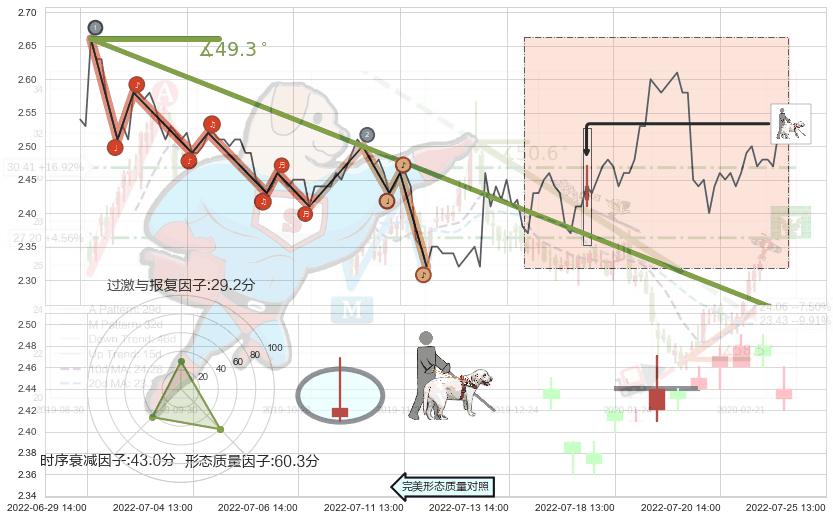 ➢ 2022-06-06 09:00-2022-07-20 14:00下跌趋势存在反转上涨[机会],其原下跌趋势的阻力位(2.252)已被突破[强支撑信号],原下跌趋势角度: 49.3˚