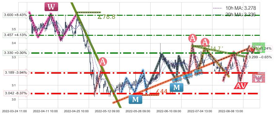 ♘ 阻力价格位3.330,可信任强度80.52%,距离最后交易2022-08-12 14:00形成的收盘价格3.320相差 +0.30%