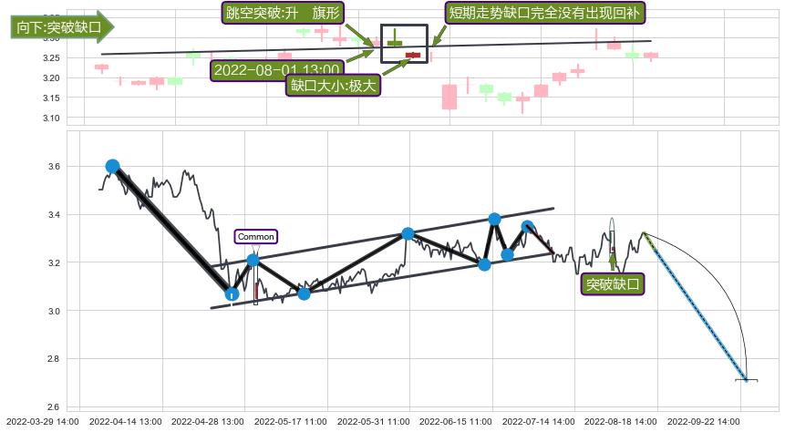 ➢ 2022-08-01 13:00形成:向下跳空【突破】缺口