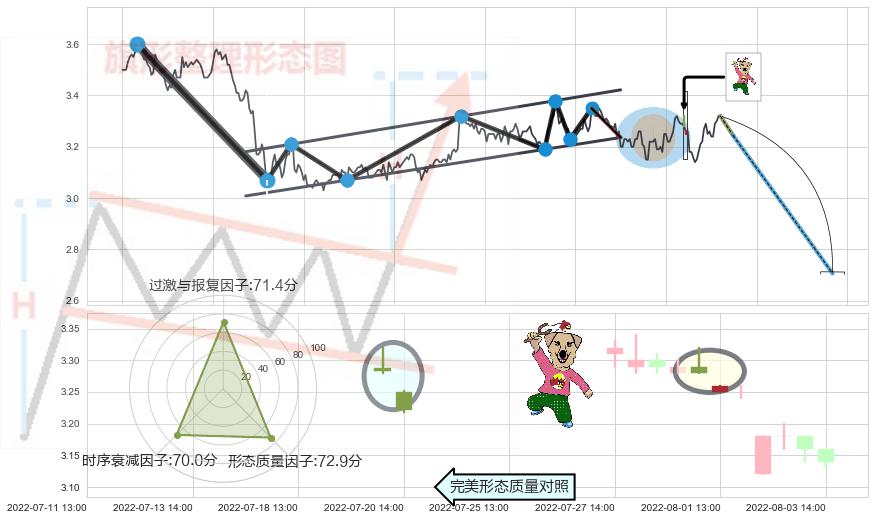 ➢ 🕰 价格走势在2022-08-03 13:00:00至2022-08-03 14:00:00期间形成双针探底,残存影响值:3.85