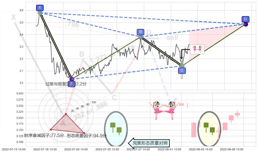 ➢ 🕰 价格走势在2022-08-04 13:00:00至2022-08-04 14:00:00期间形成上涨螺旋桨形态,残存影响值:4.58
