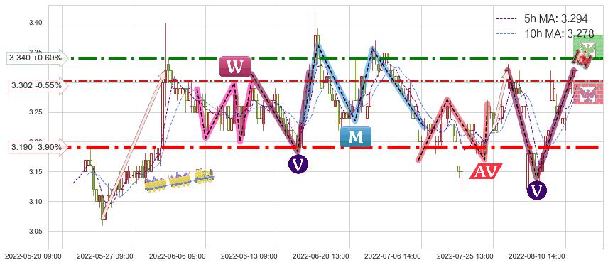 ➣ 【已确认突破】最后价格:3.320与最小【反转】第一目标价格→(08-30:13: 2.967 )相较: 下跌空间【较大】