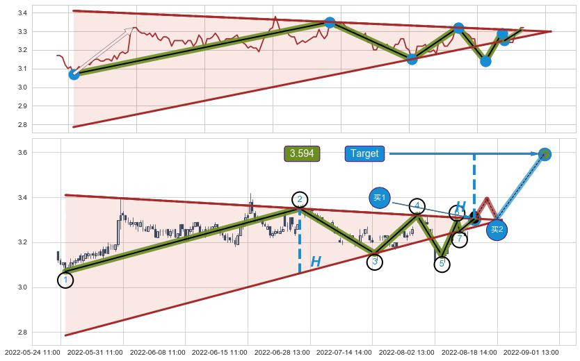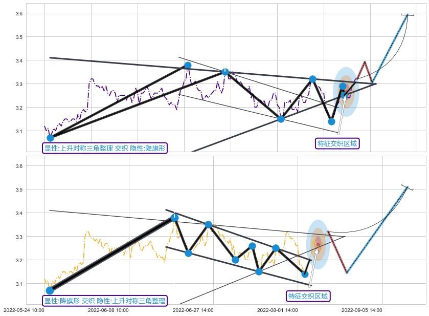 ➢ 【买1】: 激进型 买点 →(08-12:13: 3.305 )形成突破上升【对称】三角形整理【整理】形态
