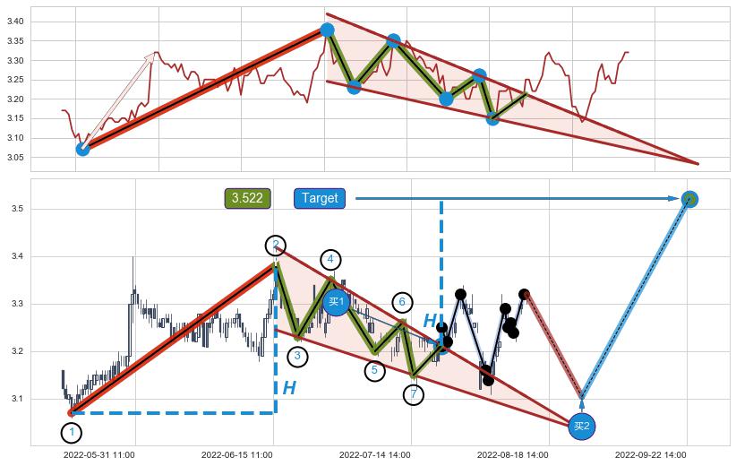 ➢ 最小中继整理涨幅→𝐇: 0.31000 (𝐇楔型旗杆的长度:楔型起点→顶点)