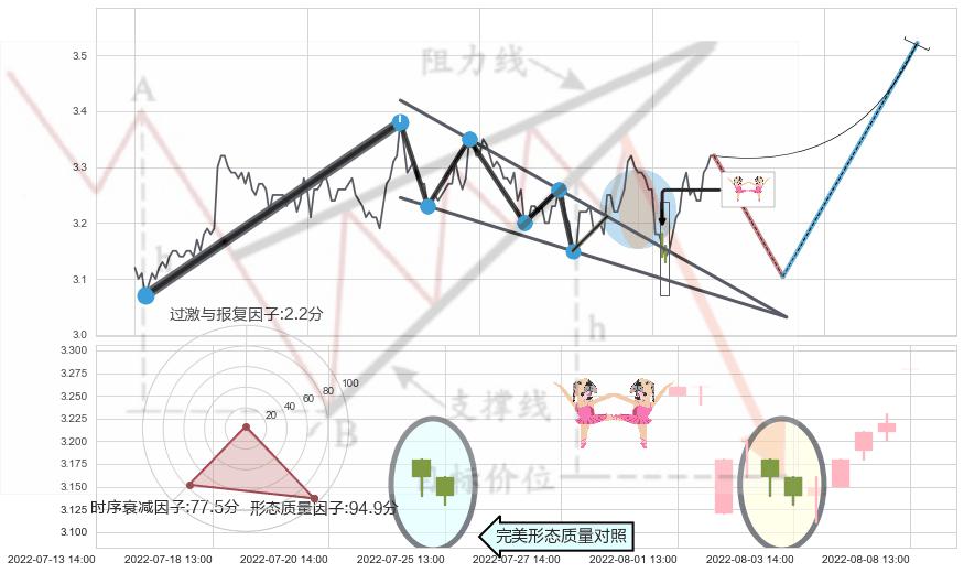 ➢ 🕰 价格走势在2022-08-04 13:00:00至2022-08-04 14:00:00期间形成上涨螺旋桨形态,残存影响值:4.58