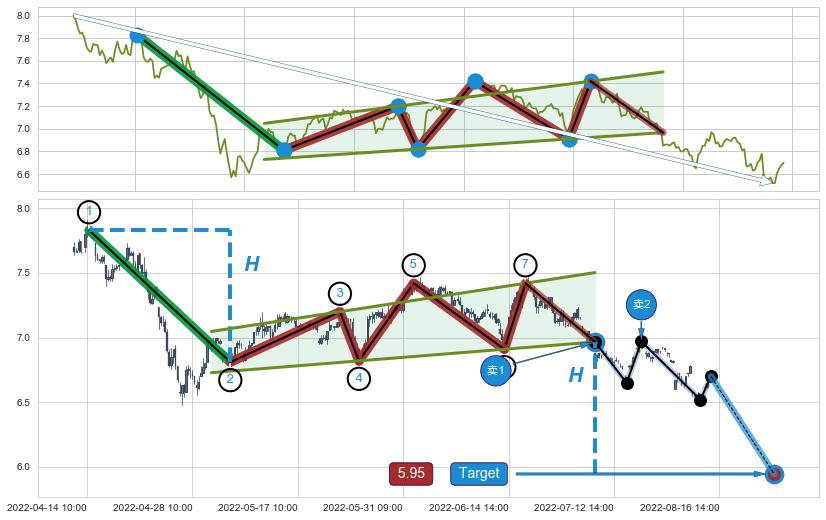 ➣ 最小中继整理跌幅→𝐇: 1.0200 (𝐇旗杆的长度:旗杆起点→顶点)