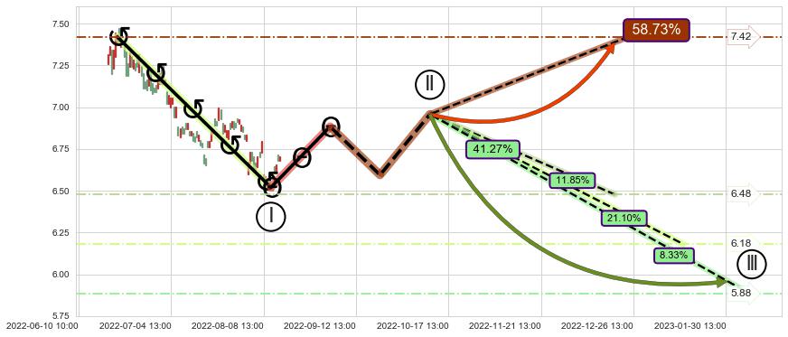 ♘ 支撑价格位6.62,可信任强度72.09%,距离最后交易2022-08-12 14:00形成的收盘价格6.70相差 -1.21%