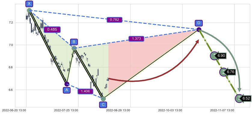 ➣ D点拟合预测价格7.14,距离最后交易收盘价格6.70相差 +6.53%