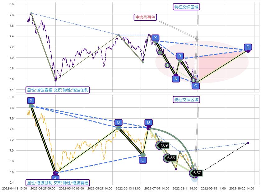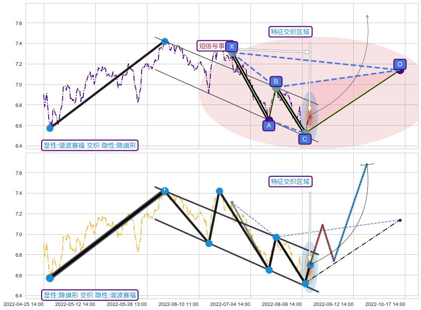 ➣ 未完成【赛福】形态起点X: 06-21:14, 已到达C点: 08-10:13, 预测最终D点: 10-13:13, 共164交易小时
