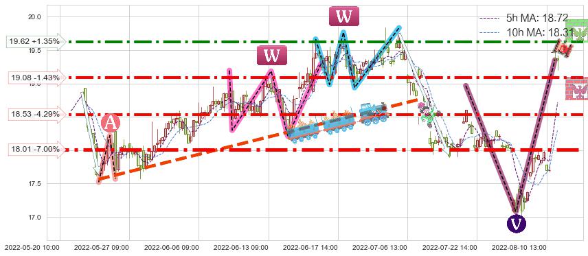 ♘ 阻力价格位19.62,可信任强度80.97%,距离最后交易2022-08-12 14:00形成的收盘价格19.36相差 +1.35%