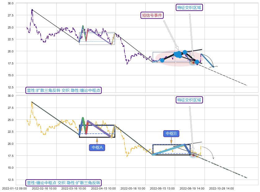 ➢ 扩散三角反转属【短级别信号事件】下跌矩形整理属【长级别信号事件】长短周期组合信号事件, 短长事件长度比32.96%