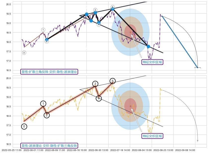 ➢ 波浪理论上涨浪:浪5回调拐点 🔜 扩散三角反转支撑破位转换阻力下跌 综合量化分数:43.22 【偏空】