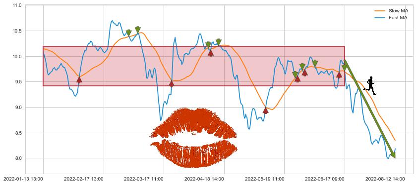 06-17 09:00至08-12 14:00 慢线与快线呈空头排列, 慢线与快线接触少,无缠绕