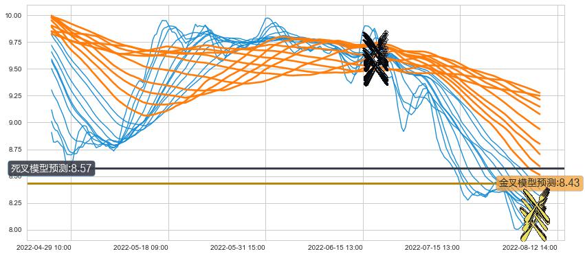 ➣ 180小时均线于(06-16 14:00: 9.49)形成【死叉】基于【死叉历史模型】预测死叉后最低波谷价格: 8.25, 死叉后最低价格7.95,已经下跌超出预测最低波谷价格, 预期反弹