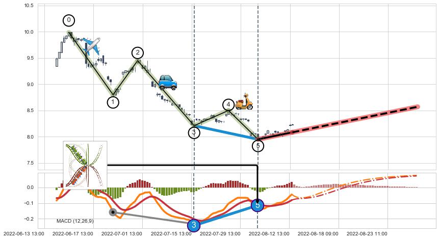 ➣ 上涨螺旋桨形态 + 波浪理论下跌浪:浪5反弹拐点信号叠加后【反向回撤率】极低,【看多】信号叠加【存续影响极大】