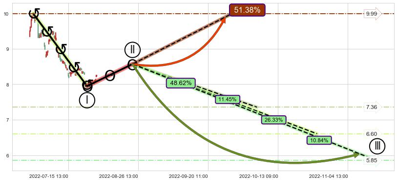 ➢ 循环浪继续向下【最低】位置(11-15:12, 5.85),匹配聚类样本比例22.29%, 可能性概率10.84%