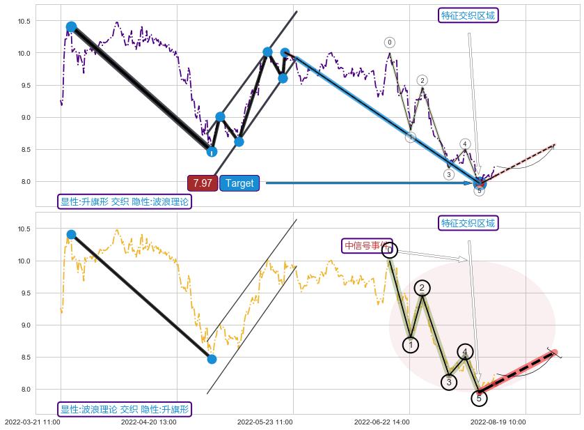 ➢ 波浪理论下跌浪:浪5反弹拐点 🔜 升旗形target支撑拐点上涨 综合量化分数:55.42 【偏多】