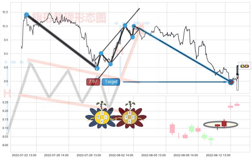 ➢ 【已达成】最小【整理】第一目标价格→(08-03:14: 7.97 ), 后续继续【整理】下跌动力依然存在,下跌空间适中