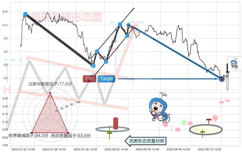 ➢ 🕰 价格走势在2022-08-10 14:00:00至2022-08-11 13:00:00期间形成上涨螺旋桨形态,残存影响值:7.76