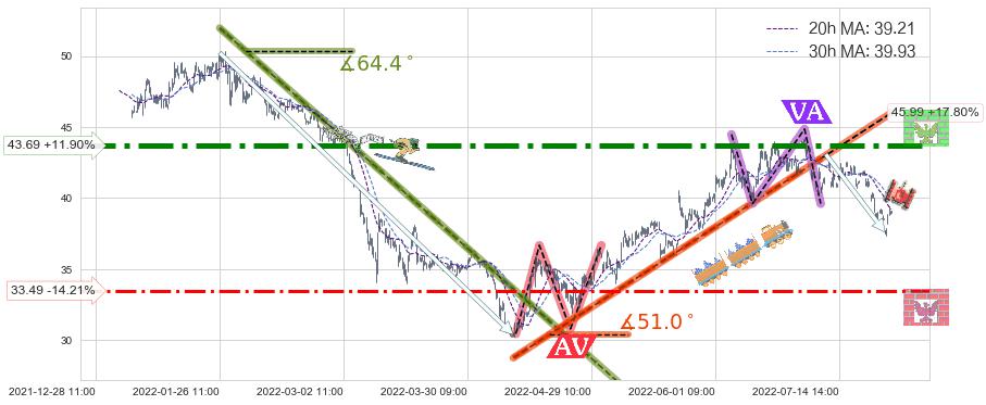 ♘ 阻力价格位43.69,可信任强度91.67%,距离最后交易2022-08-12 14:00形成的收盘价格39.04相差 +11.90%
