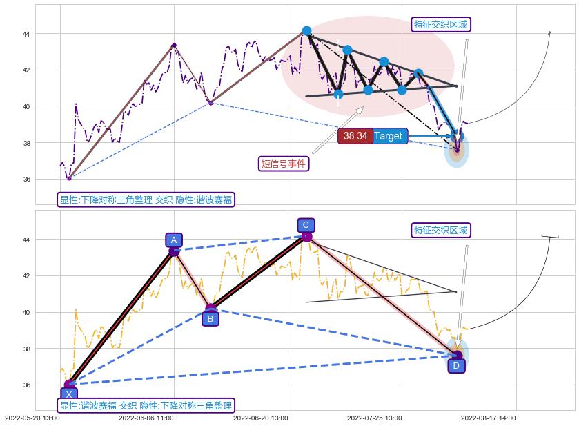 ➢ 下降对称三角整理属【短级别信号事件】谐波赛福属【长级别信号事件】长短周期组合信号事件, 短长事件长度比32.16%