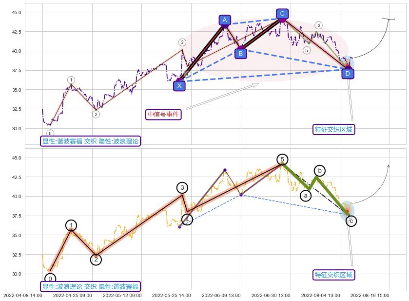 ➢ 谐波赛福:c下跌到达d:猜想拉升 → 上涨 →【拐点】强支撑临近 → 大趋势均值回复