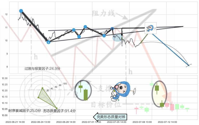 ➢ 🕰 价格走势在2022-07-08 14:00:00至2022-07-11 13:00:00期间形成下跌螺旋桨,残存影响值:-3.16