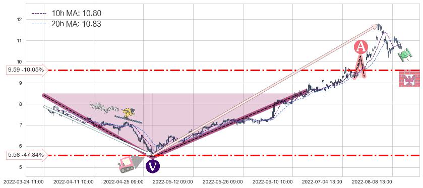 ♘ 支撑价格位9.59,可信任强度61.74%,距离最后交易2022-08-12 14:00形成的收盘价格10.66相差 -10.05%