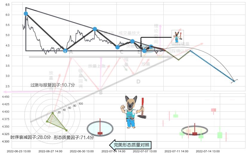 2022-06-14: 时域附近第一阻力位4.60持续的对下跌趋势进行阻拦,有效地放缓了下跌的速度。