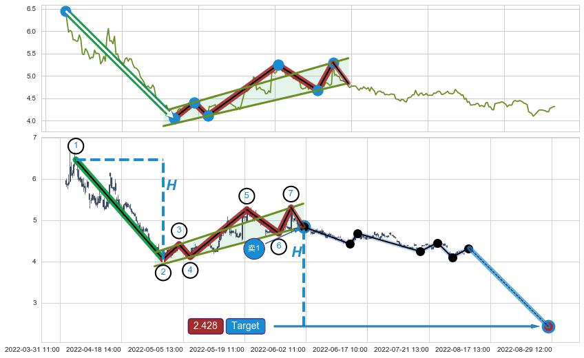 ➣ 最小中继整理跌幅→𝐇: 2.410 (𝐇旗杆的长度:旗杆起点→顶点)