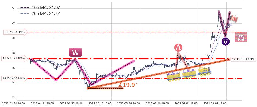 ♘ 支撑价格位17.23,可信任强度87.73%,距离最后交易2022-08-12 14:00形成的收盘价格21.98相差 -21.62%