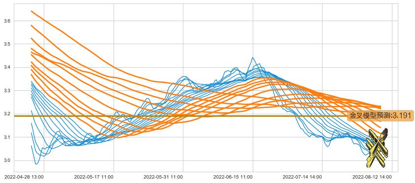➢ 40小时均线于(08-11 14:00: 3.070)形成【金叉】基于【金叉历史模型】预测金叉后最高波峰价格: 3.199, 金叉后最高价格3.100,尚未达到预测最高波峰价格, 预期继续上涨