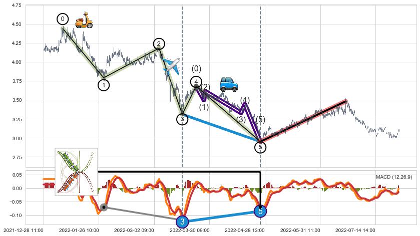 ➣ 波浪理论:猜想达到c点后小反弹终止反转下跌 → 下跌 → 【拐点】临近 → 阶段均值回复结束后继续大周期趋势跟踪