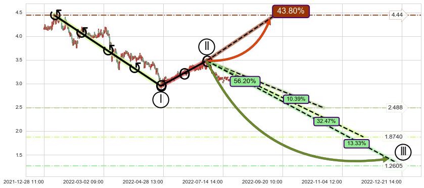 ♘ 阻力价格位4.16,可信任强度75.52%,距离最后交易2022-08-12 14:00形成的收盘价格3.100相差 +34.35%