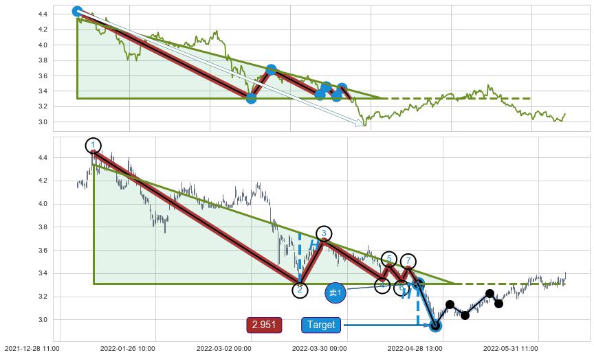 ➢ 【已达成】最小【整理】第一目标价格→(04-27:09: 2.951 ), 后续继续【整理】下跌动力依然存在,下跌空间适中